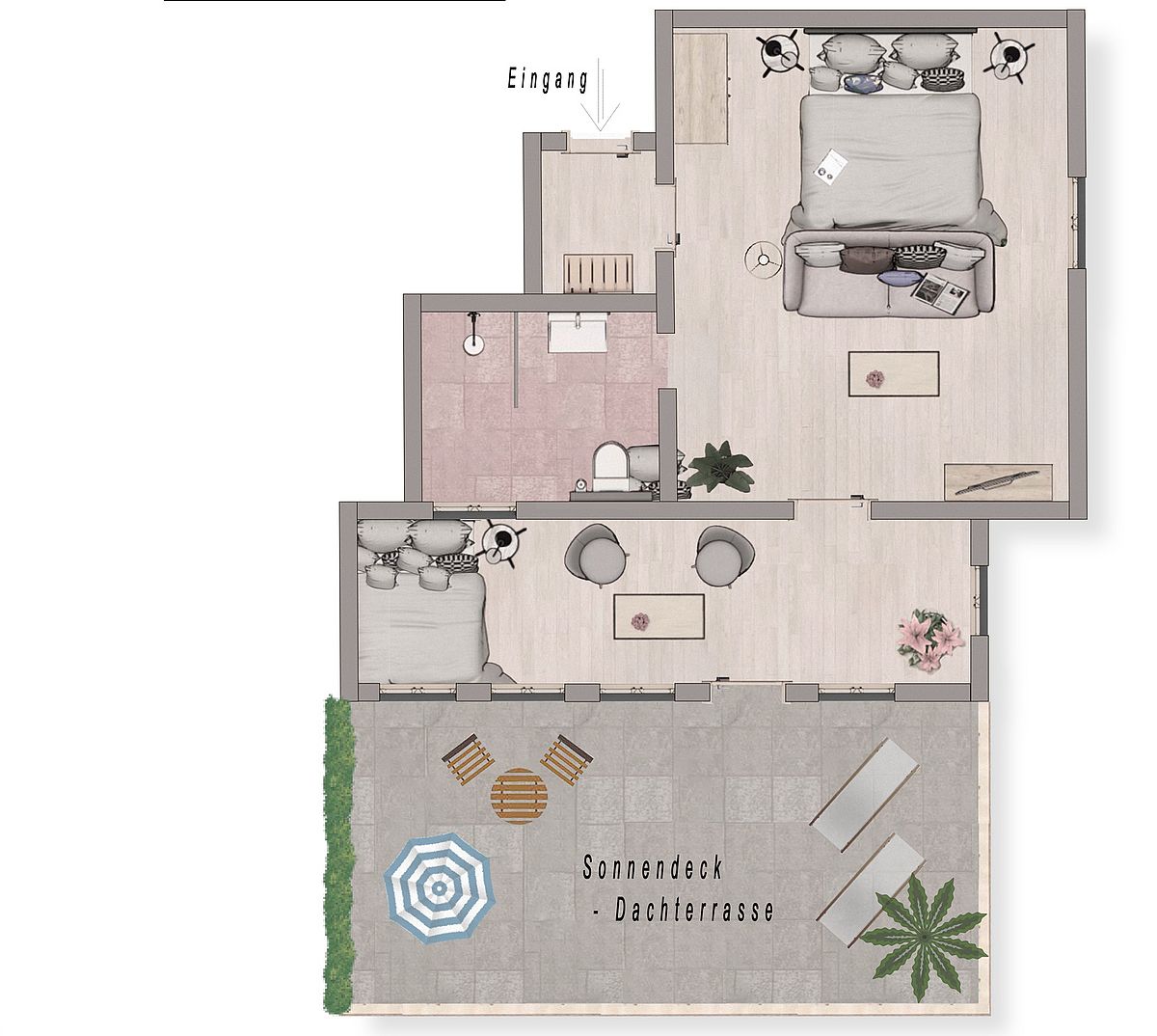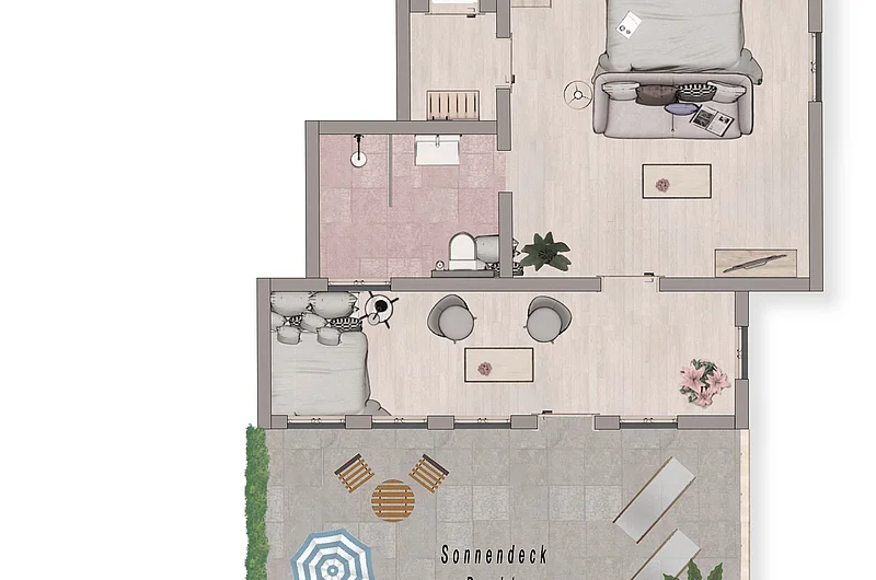 Willkommen in Ihrer Junior See - Suite, einem 45m² großen Refugium mit exklusiver 30m² Sonnendeckterrasse.