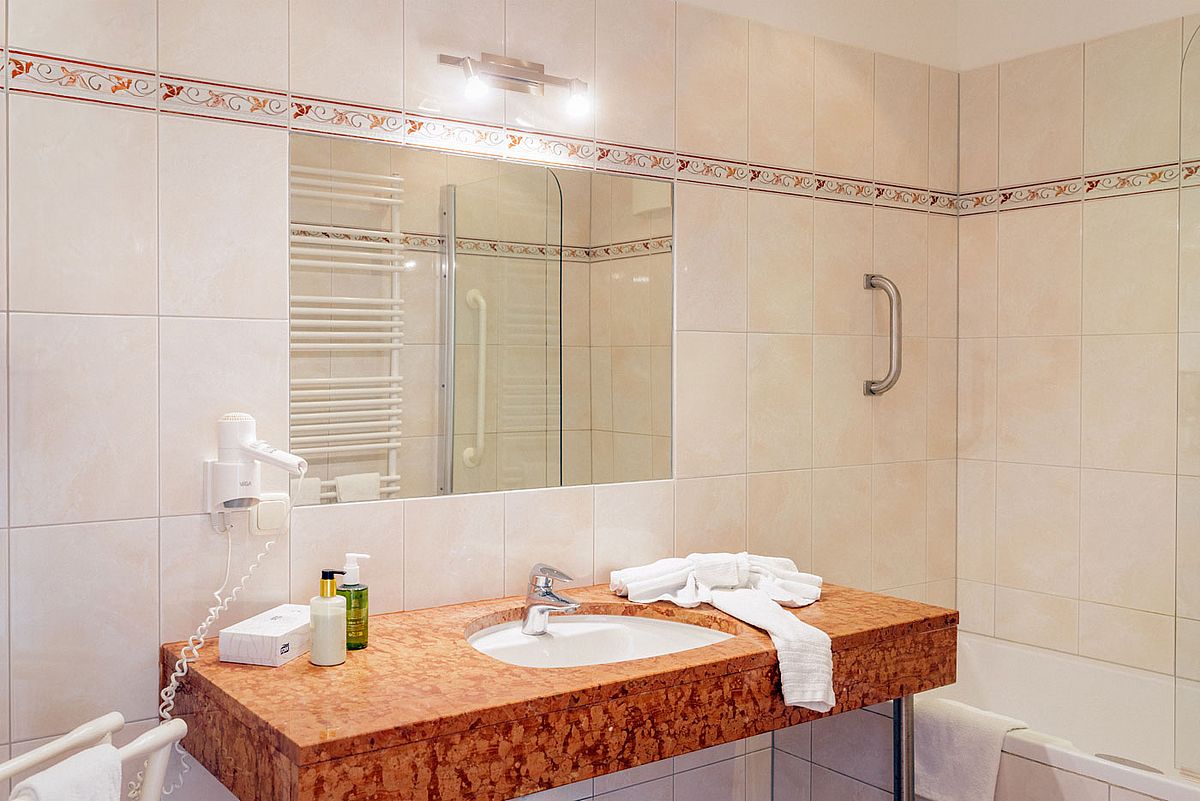 • Marmorbadezimmer mit großer Badewanne