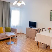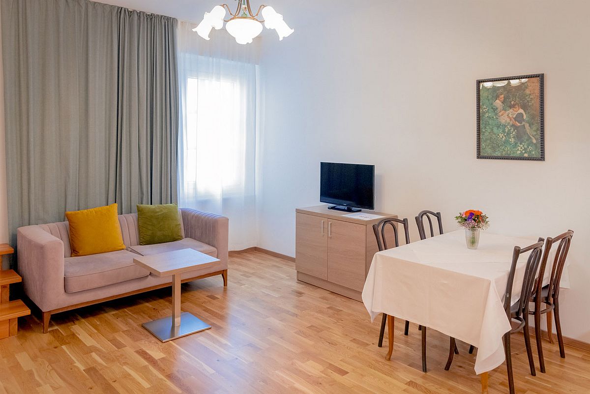 Ihre großzügige Familiensuite auf ca. 55m² bietet maximale Flexibilität für bis zu 4 Personen mit der Möglichkeit, getrennt zu schlafen. Zwei separate Schlafzimmer mit komfortablen Doppelbetten garantieren Privatsphäre, während der helle Wohnbereich mit gemütlicher Sitzecke und Loungebereich zum Verweilen einlädt.