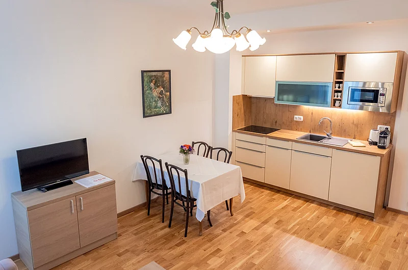 Die vollausgestattete Küche gibt Ihnen kulinarische Unabhängigkeit – ideal für Familien, die Flexibilität schätzen. Vom offenen Balkon genießen Sie den Blick zum See und entspannte Momente im Freien.