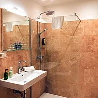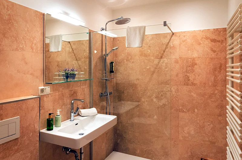 • Badezimmer mit walk in Dusche & WC
