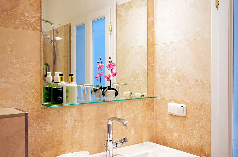 - Badezimmer mit Walk in Dusche