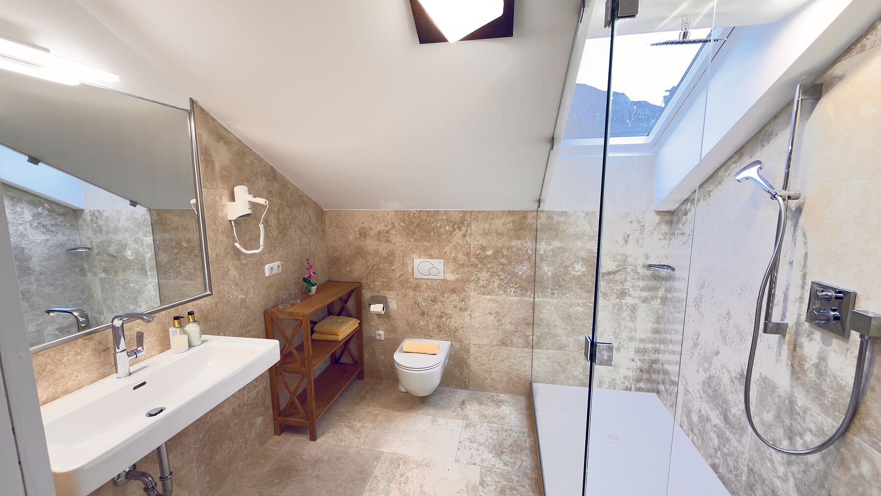 - Marmorbadezimmer mit Walk in Panorama Dusche & WC